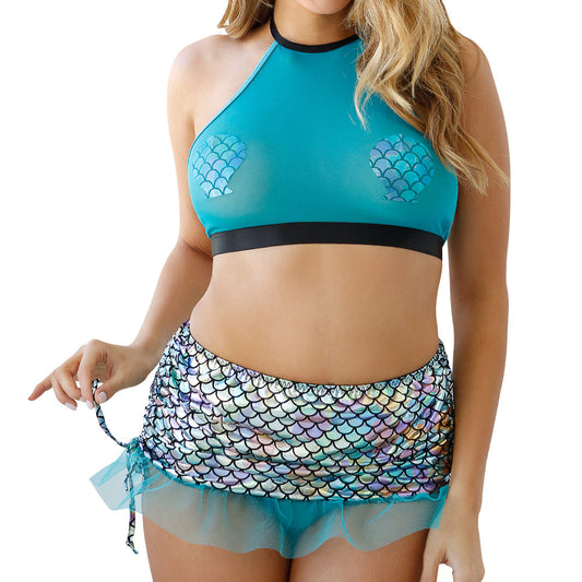Fantasy Lingerie Glow Captivating Halter Bodystocking & G-String