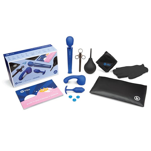 Experience the ultimate in ecstasy and sexual schooling with this anal education set, an A+ collab between b-Vibe and Le Wand. Explore anal, vaginal and erotic play with this versatile kit, which features the Le Wand petite vibrator, the curve silicone attachment for G-spot and prostate stimulation and the b-Vibe snug plug 2 for that fullness you crave. Plus, get hands-on with anal condoms, a pleasure book, enema, lube shooter and more for a complete backdoor experience.
