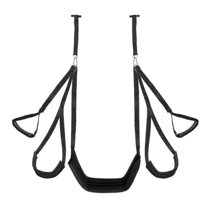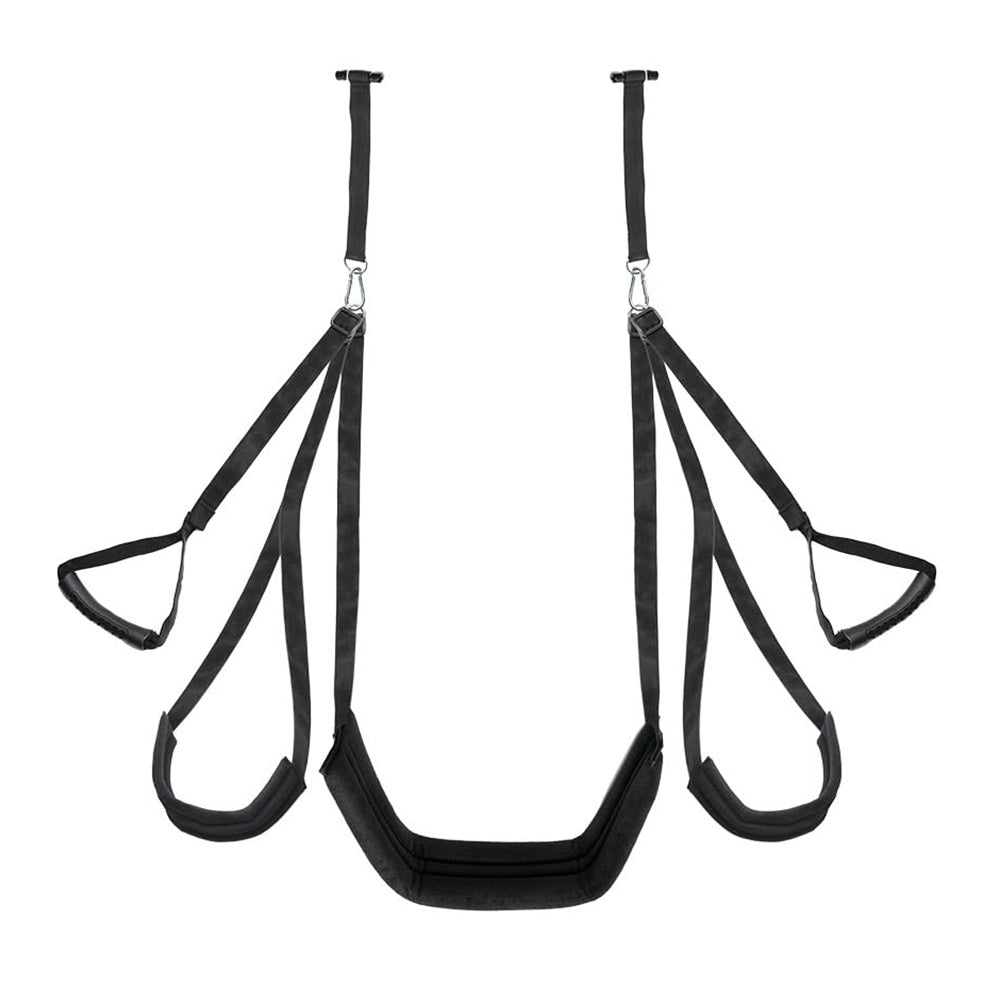The Bedroom Bliss Lover's Door Swing is what happens when Newton's laws of motion decide to party! This gravity-defying genius transforms any boring doorway into a gateway to adventure. The plush thigh and bottom pads cradle you like a cloud while sturdy nylon straps handle the heavy lifting. Supporting up to 300lbs of airborne antics, it's padded better than your resume and adjusts smoother than a DJ's transitions. All straps, leg pads, and grips are fully adjustable (and detachable!) for finding your perfect flight path. When playtime's over, it vanishes into storage quicker than party guests when the cops show up.