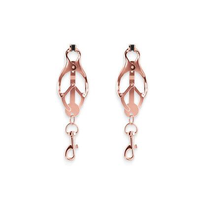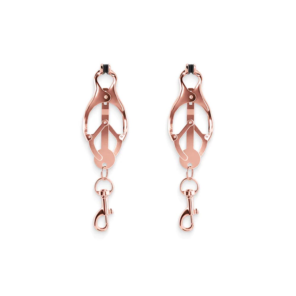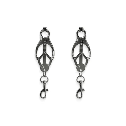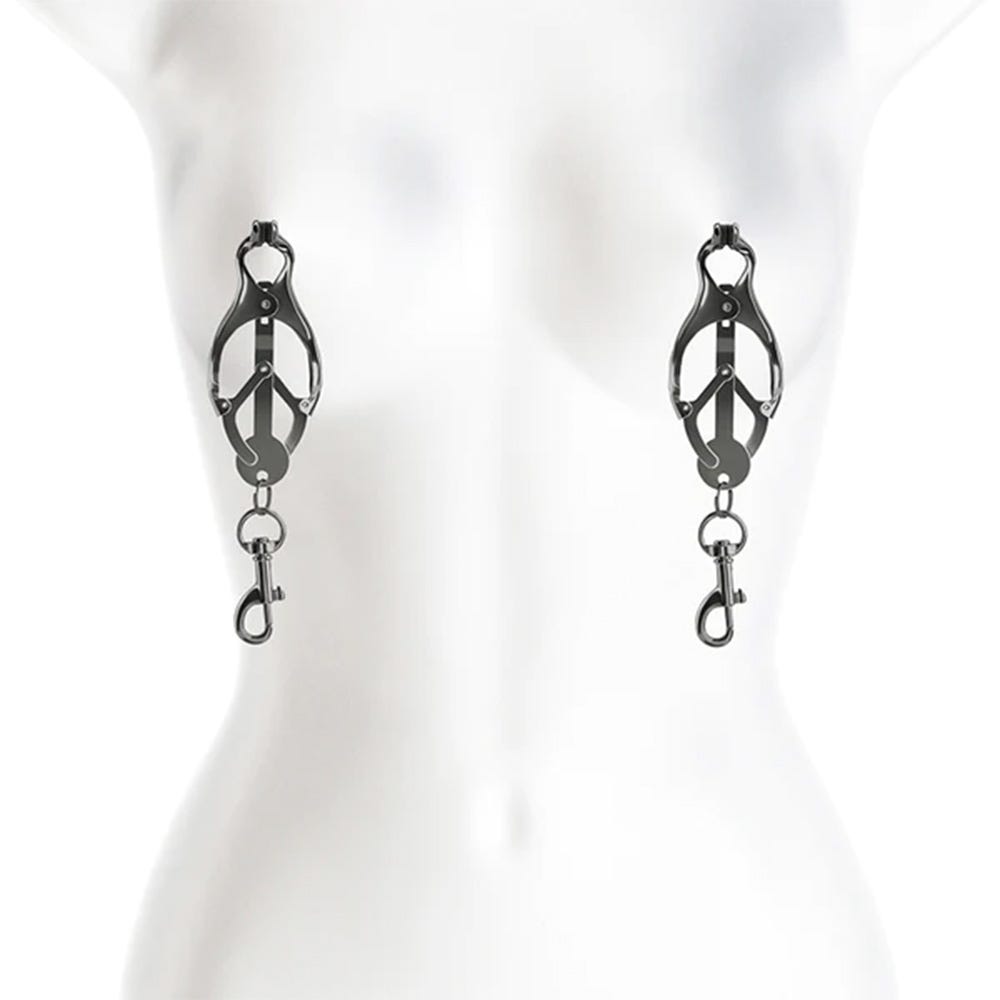 Meet your new favourite plaything. These nipple clamps offer a gentle touch at first, but the real magic happens when you start adding tension. As you pull or attach weights, they transform into an increasingly intense sensation thanks to their clover-style mechanism. Want to take things up a notch? Simply attach devious add-ons to the hanging swivel clips for extra pressure and excitement. Crafted from nickel-free metal with silicone tips for a comfortable and secure fit.
