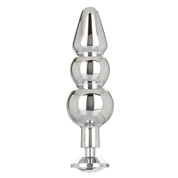 Bedazzle your booty and boost your erection simultaneously with this sparkling gem beaded butt plug and dual penis enhancer. The stretchy silicone enhancer slides on to heighten sensitivity and stamina, while the sleek metallic probe boasts a tapered tip and exhilarating beaded design with a glamorous diamond-like base. Use together or separately to blast off into a universe of bliss.