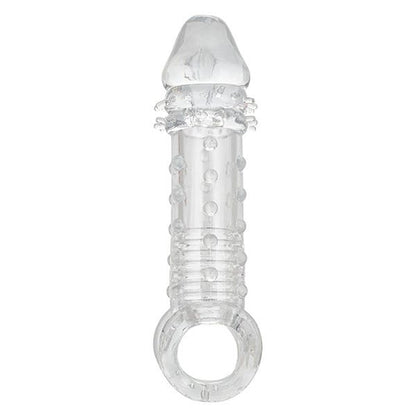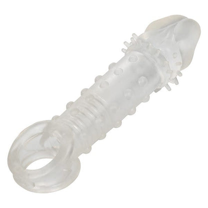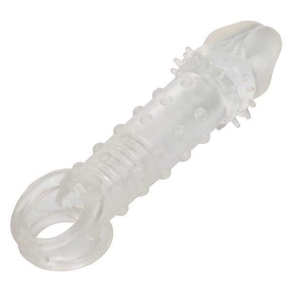 Bask in mutual pleasure with this textured enhancer penis sleeve from Calexotics. Featuring a sensually beaded length, this enhancer wraps tight around your shaft and secures with a scrotum strap for increased length and girth. With a textured internal and external shaft, you and your lover will both experience heighten pleasure.