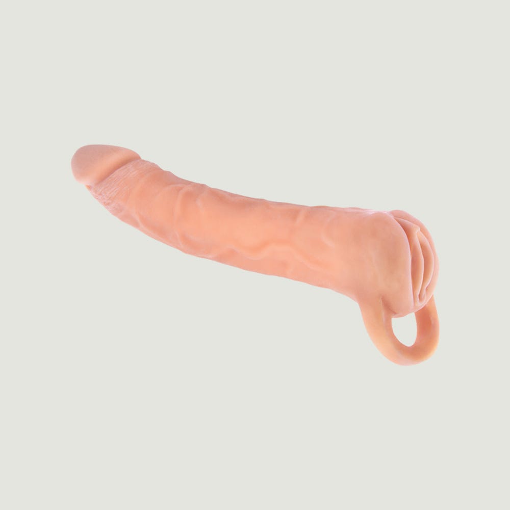 Discover the dual delight this toy, designed for heightened erotic experiences. Whether flying solo or enjoying duo play, this extender doubles as both a realistic masturbator and a penis extender. Immerse yourself in its lifelike details, featuring a 9" penis with a meticulously crafted vagina design. The thickly padded ball straps ensure a secure fit, while the life-like material and realistic veins enhance the authenticity of your encounter. Its tight and stimulating tunnel intensifies sensations, offering an unmatched, realistic feel. How to use Always pair with plenty of water-based lube and clean after each use.