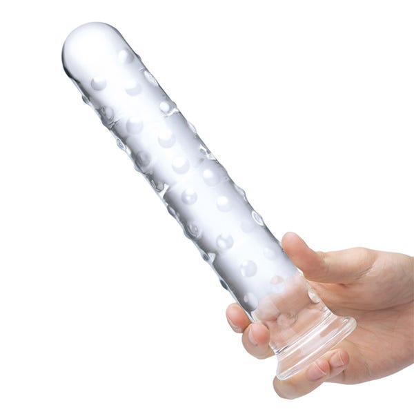 Enjoy deep penetration and larger-than-life orgasms with this 10-inch lustrous glass dildo featuring ridges all along the shaft that provide massage thoroughly, hitting all of the areas that desire it the most. Non-porous, fracture-resistant and hypoallergenic, borosilicate glass is easily cleaned and compatible with all lubricants.