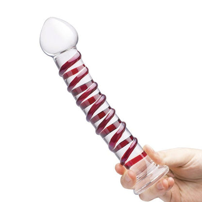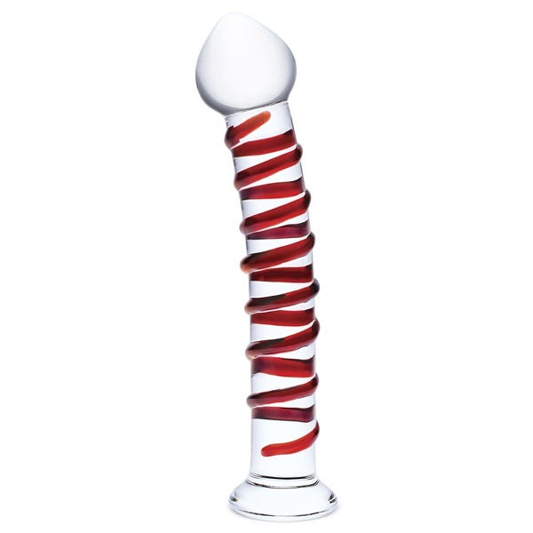 Consider Mr Swirley the complete package. Experience the tapered tip for gentle insertion and swirling vein-like detail along the shaft for heightened sensation. Plus a flat-base for added grip and control. Non-porous, fracture-resistant and hypoallergenic, borosilicate glass is easily cleaned and compatible with all lubricants.