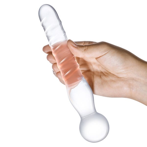 Take the wheel and enjoy the pleasure ride with this glass dildo. Featuring a clear, undulating shaft that catches the light in mesmerising patterns, it's curved design is perfect for reaching those sweet spots with precision, promising an unforgettable exploration of your deepest desires. Non-porous, fracture-resistant and hypoallergenic, borosilicate glass is easily cleaned and compatible with all lubricants.