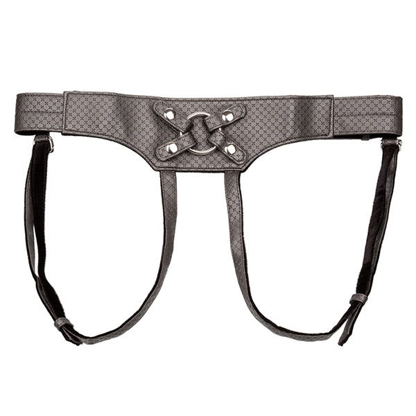 Indulge in pleasure fit for a queen with this crotchless harness from Her Royal Harness. Made for a performance and comfort with a quick-buckle waist closure, customizable fit, and plush-velvety lining, the crotchless vegan leather harness features adjustable thigh and waist straps for customised comfort. Perfect for pegging or strap-on play with a snap-in ring system to fit almost any probe, it's time to claim your throne.