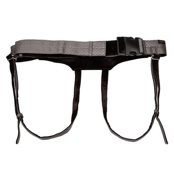 Fasten the harness around your waist and thighs, attach a dildo of choice, and enjoy your royal play. Clean your harness thoroughly after use.