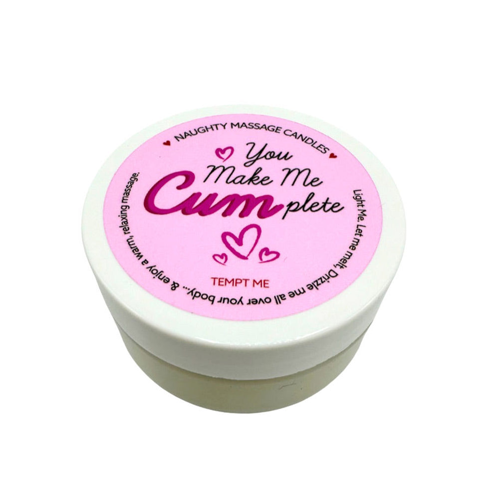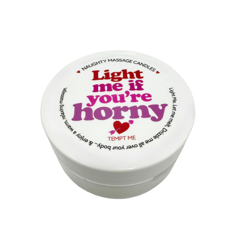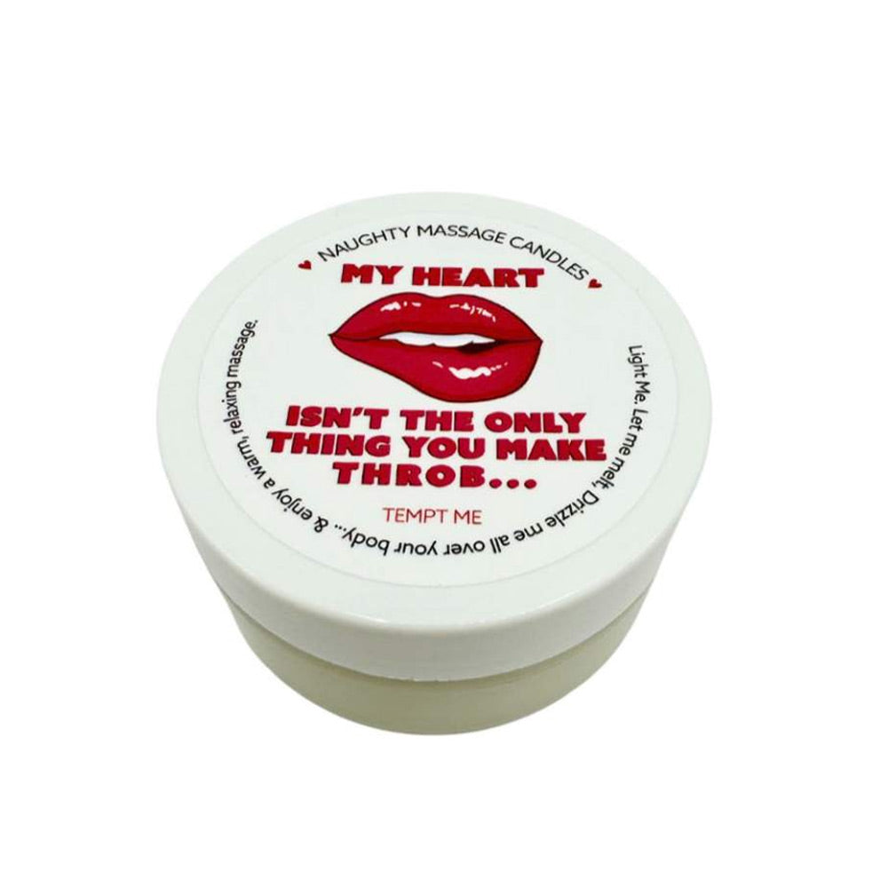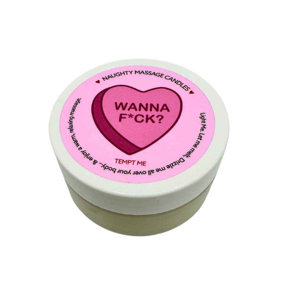 A warm, melty, coconut oil based massage candle with a naughty message. Valentines limited-edition!