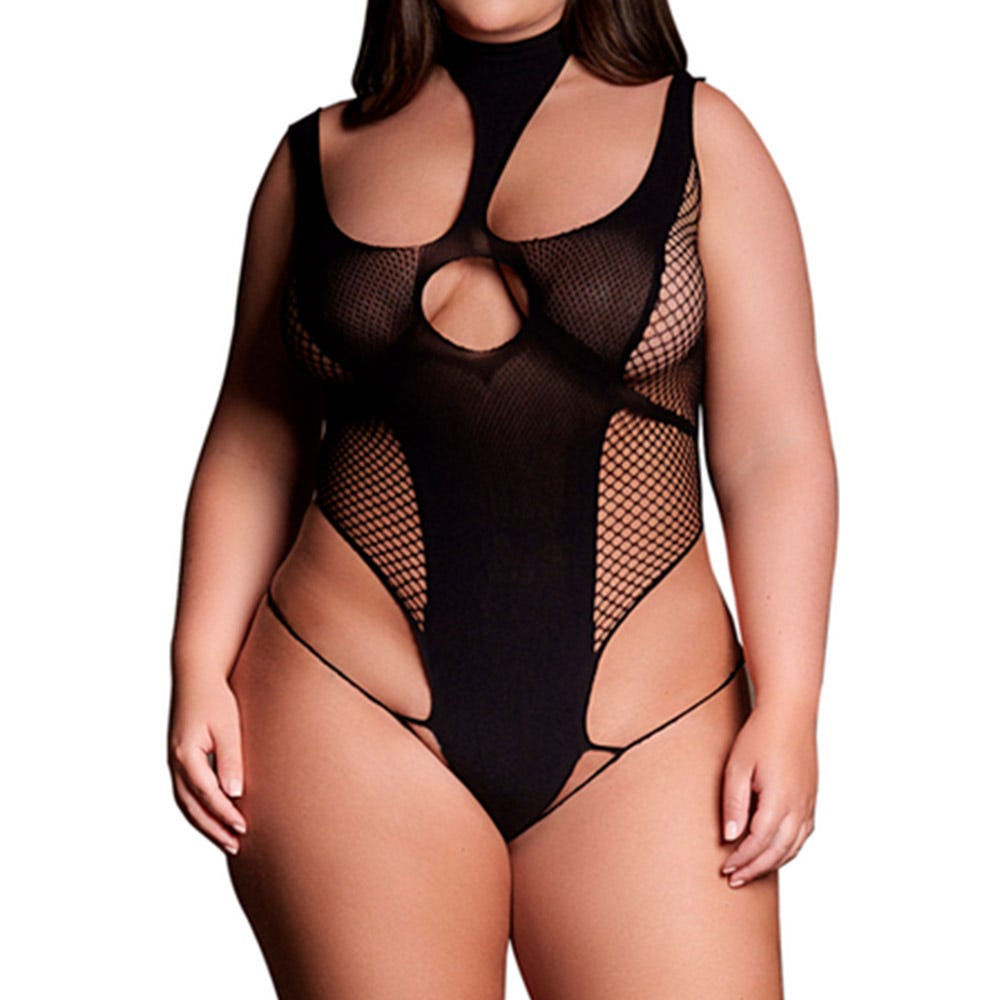 Your femme fatale will come roaring out with the Le Desir Cyllene Turtleneck Teddy. Marrying sophistication with raw allure, it wraps you in a black web of seduction. The high turtleneck exudes authority, while strategically placed fishnet panels highlight so much skin on show. The cheeky cut accentuates your assets both front and back, lifting and shaping to perfection. Crafted from high-quality, stretchy materials, Cyllene adapts to your unique body shape, promising a fit that's as comfortable as it is captivating.