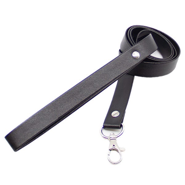 Embrace the bold side of intimacy with this Love In Leather collar and lead set. Unlined for a sleek, minimalist look, the sturdy collar offers a secure yet comfortable fit, and the durable, detachable lead ensures a safe exploration of power play dynamics. Pair with other Love in Leather bondage accessories to complete the look.