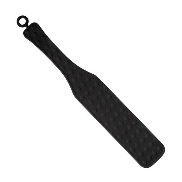 Make your mark with this Love in Leather firm silicone paddle. Crafted from medical-grade silicone and reinforced with a metal rod, this weighty paddle promises a thrilling journey of sensation and pleasure. Entirely waterproof and temperature responsive the paddle features a diamond patterned front and faux stitching on reverse for added sensations.