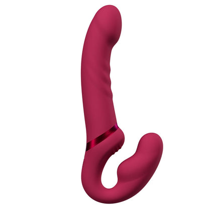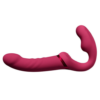 Share in the pleasure with this double-ended strapless strap on vibrator. Offering three stimulations and vibrations for the G-spot, P-spot, and C-spot, the strap-on offers a plethora of penetrative sex opportunities no matter your sexual preference. Weighing just 311g, its body-safe silicone offers a skin-like feel, while the ribbed shaft and ridged grooves intensify pleasure. Sync it with music for a unique rhythmical experience, and personalize your play with its three customizable motors. It's fully waterproof (IPX7) and offers up to 156 minutes of use on a single charge, ensuring uninterrupted pleasure.