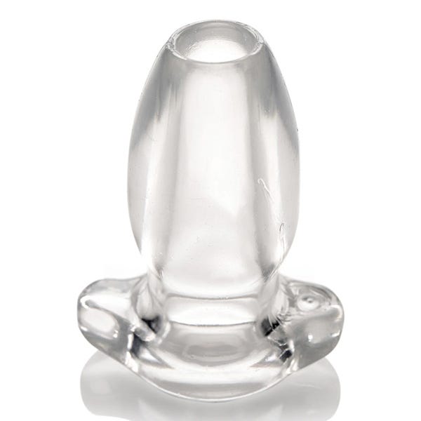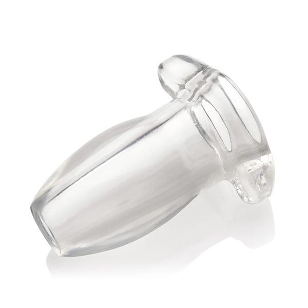 Peek into a new dimension of pleasure with the peephole clear hollow anal plug. This playful accessory is designed for cheeky, exhilarating exploration, offering unique visuals and sensation for a joyously empowering experience with your partner. The perfect size for butt beginners, it offers 8cm of penetration with a sooth tapered tip and flared base. The hollow design is also ideal for liquid play.