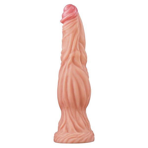 Crafted for maximum satisfaction, this dual-layered platinum silicone cock delivers plenty of pleasure. With a pink-tip head and super rugged veins, the 9.5-inch light-skin dildo is ready to take care of business, combining silky soft silicone with a firm inner core that mimics a genuine erection to deliver incredible internal stimulation. With its suction base, this toy is perfect for hands-free play, with or without a harness.