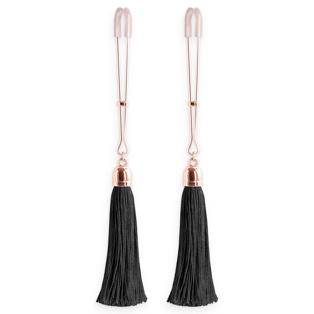 Gently position the clamps onto the desired areas, adjusting the tension to your preference. Revel in the exquisite dance of the silk tassels, heightening your arousal with each captivating sway.