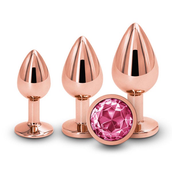 This dazzling trainer kit features three chrome-plated plugs in graduating sizes, tapered for effortless insertion. With striking colours and shimmering gems, these butt plugs provide stimulation for all your senses, whether youre training solo or playing with a partner.
