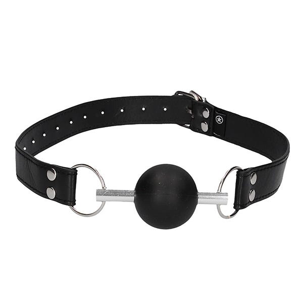 Keep your lover quiet with this distinctive ball gag. This gag has quality leather straps with elegant stitching down the length. The strap has five holes to adjust the length.