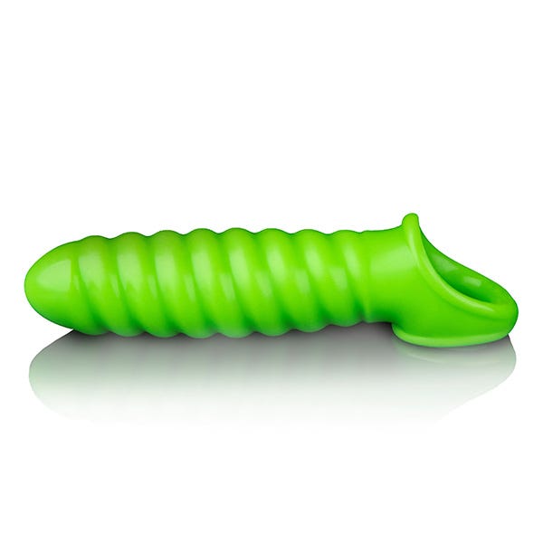 Snug, smooth and oh-so-sensual, slide this swirly, stretchy penis sleeve over your shaft for extra length, friction and pleasure. With a spiral design crafted to enhance stimulation, your lovemaking will be elevated to lofty new heights. Simply activate the glow-in-the-dark properties of the penis by sunlight and let the lightshow begin by night.