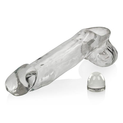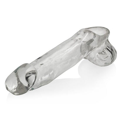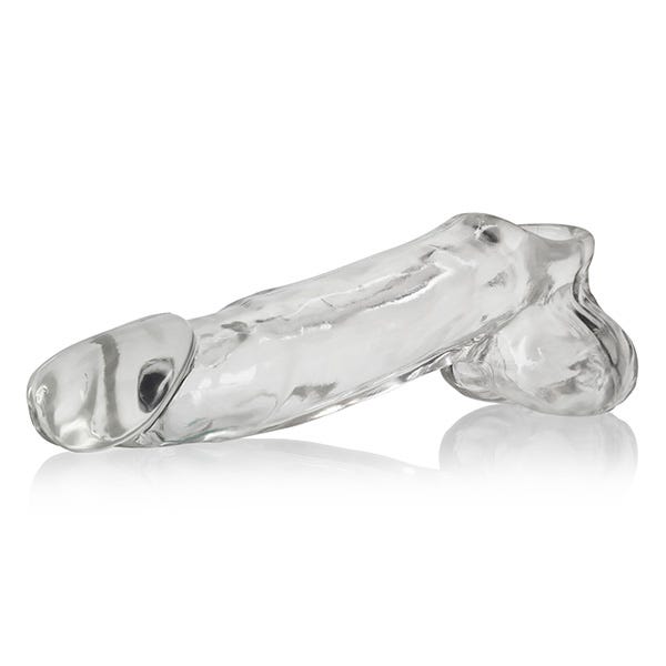Moulded from super-stretchy, soft material, the Daddy cocksheath clear penis extender enhances your size and girth to give you and your partner a deeply satisfying experience. The soft insert allows you to customise the fit and feel, while the realistic flared head and rubbery ballbag encase your sack to provide a fulfilling experience. With a built-in ball sling for a harder and longer-lasting erection, it's perfect for intense play. Indulge in the amazing sensations as the wide flared shroom head and thick shape penetrate your partner, leaving them craving more.