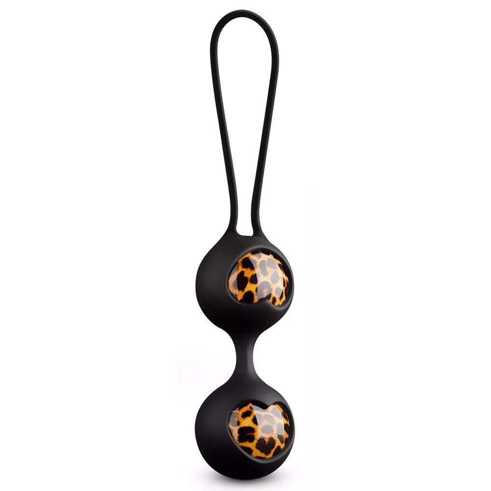 Unpack a paradise of pleasure with these leopard-print geisha Kegel balls, delightfully crafted love balls designed to tantalise as they train your pelvic floor muscles. Using a water-based lubricant, the Kegel balls can be easily inserted. Wear for 20 minutes per day to intensify stimulation and promote stronger orgasms, as the internal counterweights add extra pleasure with every move.