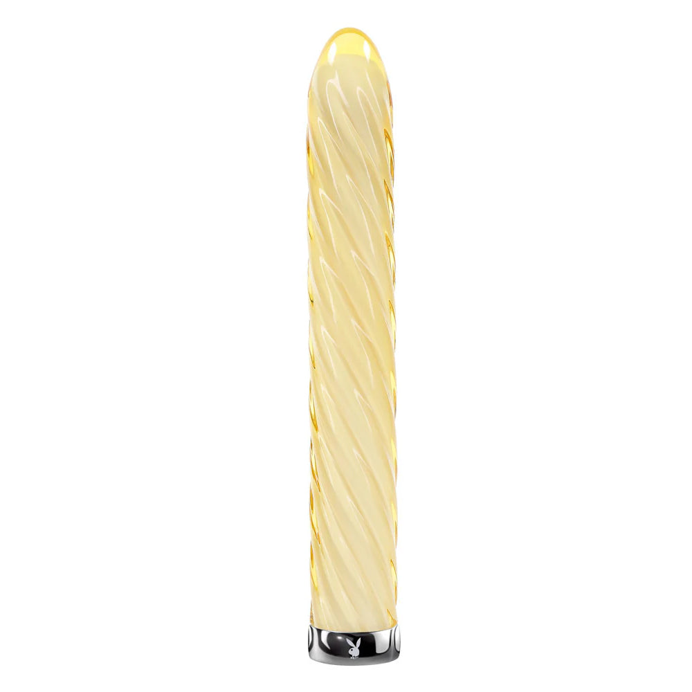 Surrender to a powerful Twist of Fate with the hypnotic twirling spirals on this chic Glass Vibrator. Tapered at the tip for easy entry, the uniquely smooth and slippery glass feel is like no other material against the skin - and its nonporous surface is hygienically superior.