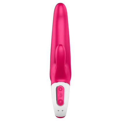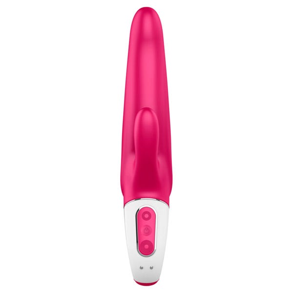 This rabbit vibrator promises a thumping good time. Stimulating both your vagina and clitoris with two motors, the larger, slightly curved shaft provides G-spot stimulation, while the smaller, narrower stimulator is ideal for clitoral stimulation. An easy-to-hold ring handle makes it easy to direct pleasure where you want it, and the accessible control panel, makes exploring its 12 vibration programs blissfully easy.
