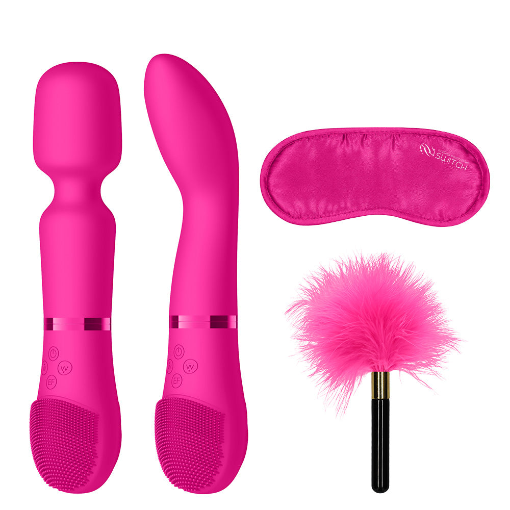 Switch up your sensations with this ultimate pleasure provider. Shots Switch Pleasure Vibrator Kit #5 is a luxurious set featuring a soft, silicone-bristled clitoral base with a ribbed ring, delivering mind-blowing sensations. The powerful 10-speed motor revs up to an incredible 15,000rpm, providing toe-curling vibrations at a discreet 60dB noise level. Explore new realms of pleasure with the 3 interchangeable attachments: a suction pulse wave vibrator, a wand vibrator and a G-spot vibrator, crafted from velvety-smooth medical-grade silicone and ABS.