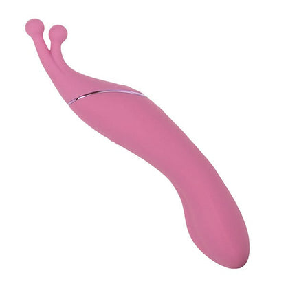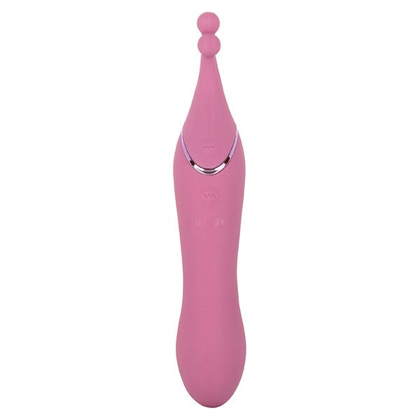 Explore your pleasure playground with this 2-in-1 toy from Tempt & Tease. This pretty pink vibrator features a flickering clitoral stimulator end, and an insertable G-spot stimulator end. With dual motors, each with 7 vibration modes and a soft dual beaded tip, this sexy stimulator is true to its name with its tempt and tease functionality. Waterproof and USB-rechargeable within 2 hours, enjoy up to 90 minutes of vibrating pleasure by yourself or with your playmate.