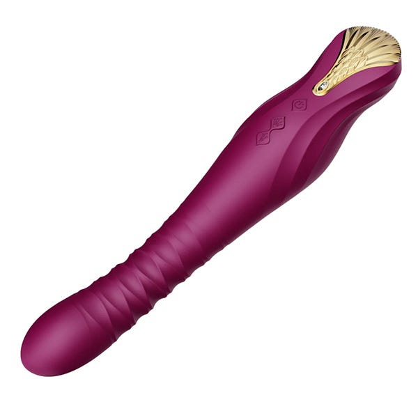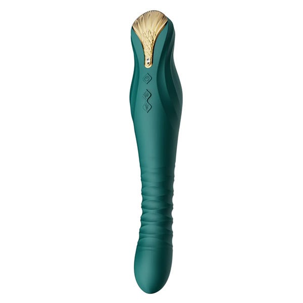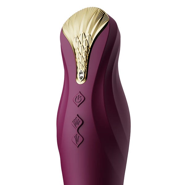 Inspired by the golden mask of an ancient Egyptian king, this luxurious vibrating thruster is in one word: exquisite. Symbolising conquest, power and magic, Zalo's King is topped by an eagle and cobra-embossed golden crown embellished with a Swarovski crystal.